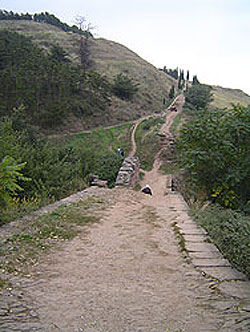 Já estava todo confiante do meu preparo físico quando parti esta manhã. Mas logo no começo da caminhada senti qual seria o drama do resto do dia. Estão construindo ou ampliando uma rodovia que passa pelo caminho em vários trechos, então os responsáveis arranjaram para os peregrinos vários “desvios provisionales” que o aumentou em cinco quilômetros de subidas cruéis. Fui pegando raiva de cada placa de desvio que eu via no caminho.