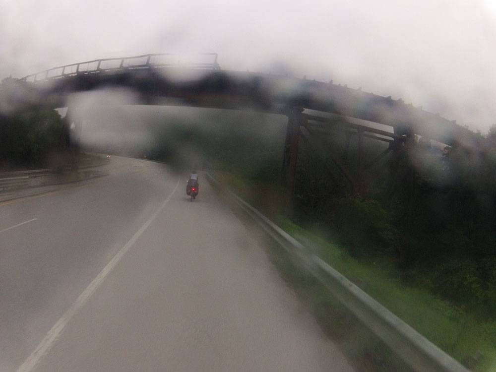 Fala, fala, fala. Essa madrugada, enquanto eu desmontava minha barraca humilde e colocava tudo na minha pobre bike rodada, ele falava sobre como tava cedo, como tinha montanha pela frente, como tinha gato na casa do lado, como não tinha banheiro, e fala fala fala. Apliquei a tática de me fazer de sonso, mas não funcionou completamente. Ele começou a falar com os gatos. Eu já estava macambúzio pela falta de banho do dia anterior, me restou tomar meu café da manhã de pacotinho em silêncio e começar a pedalar pouco depois.