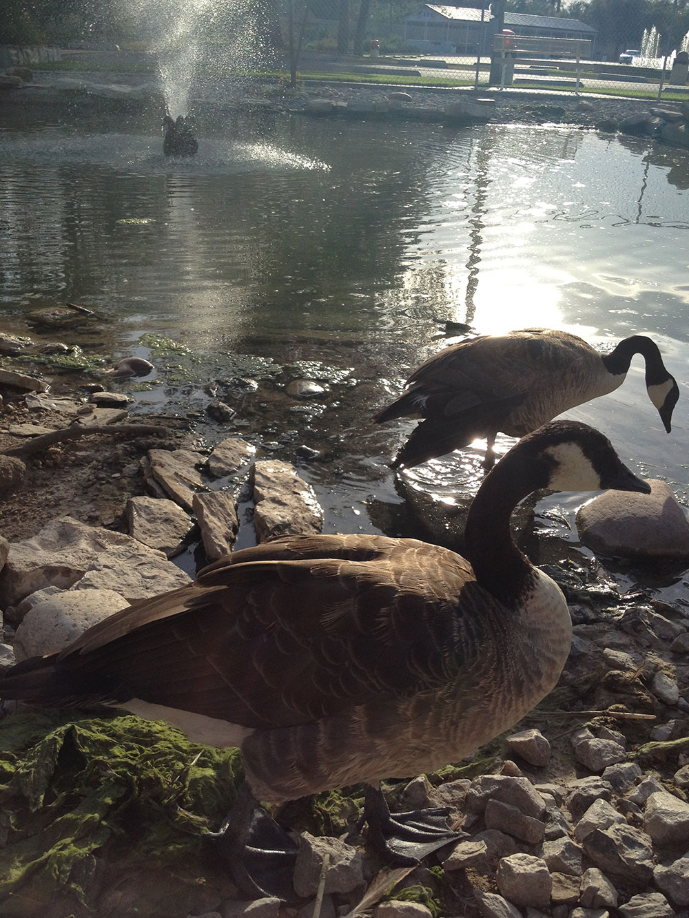 Já melhorou meu ânimo, e segui os próximos 30 quilômetros em linha reta mais contente. Um ventinho praticamente a favor ajudou a acelerar, e me deixou mais alegrinho ainda. Chegamos em Larned, onde a gente queria terminar a epopeia ontem, pouco depois do meio-dia. Paramos num café para almoçar e, analisando o mapa e a temperatura, chegamos à conclusão que até conseguiríamos chegar na próxima cidade sem sofrer muito, que não era tão longe, mas o parque da cidade não tinha banheiro nem chuveiro. Encarar calor e poeira sem a possibilidade de um chuveiro recompensador no final é crueldade, e estava tão fresquinho no café, com ar condicionado, bebidas e wi-fi. Já tínhamos rodado 90 km. Estava bom, né? E lá ficamos.